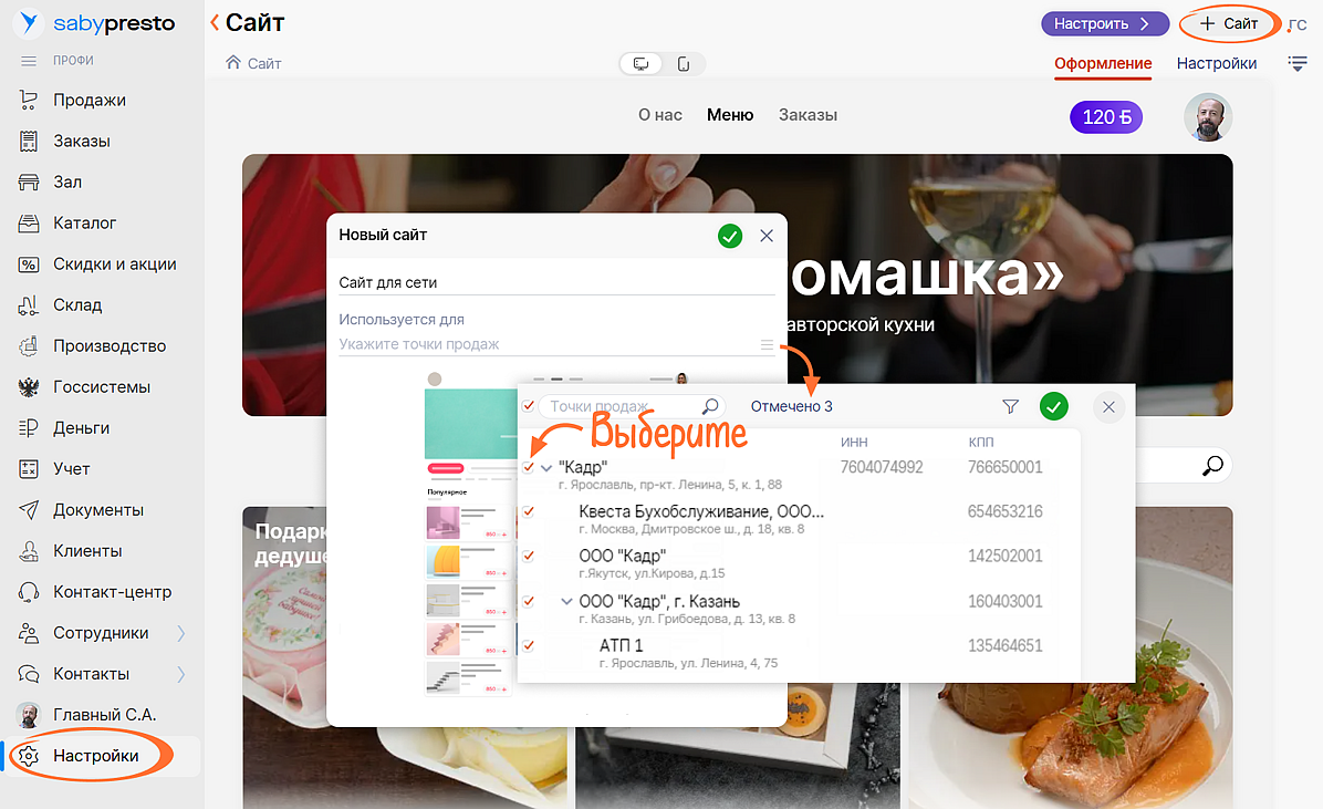 Сайт сети | Сайт торговой точки |