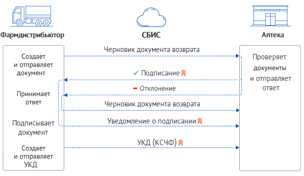 - аптека отправляет документы возврата бесплатно, их оплачивает фармдистрибьютор, остальные документы — согласно тарифам Saby.