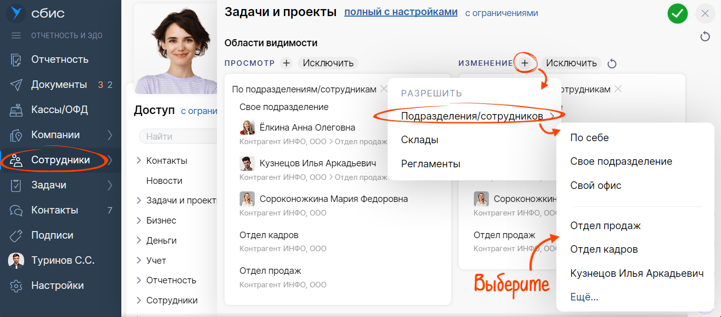 Если нужно, наоборот, ограничьте доступ к задачам какого-либо сотрудника — например, руководителя.