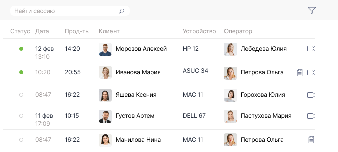 • История подключений и архив видеозаписей