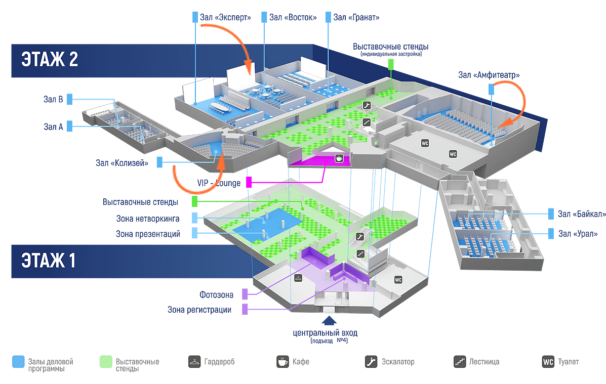 Залы, в которых выступят наши эксперты: «Амфитеатр», «Восток», «Колизей».