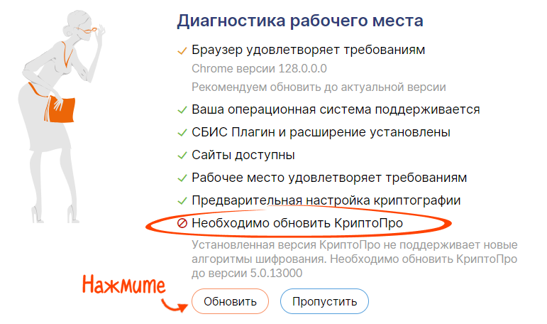 Если ваше средство криптографической защиты устарело, система сама предложит его обновить.