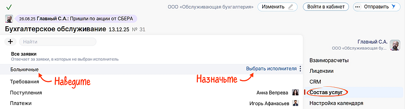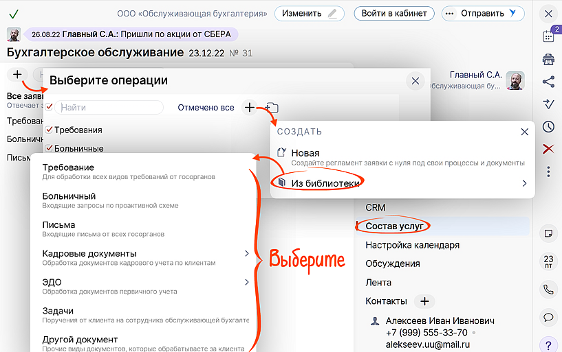 Настроить новый функционал очень просто на вкладке «Состав услуг» в договоре бухобслуживания.