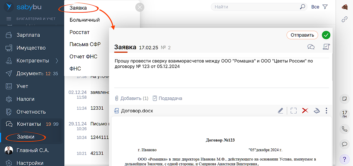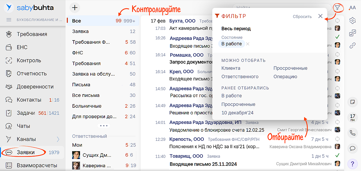Вам не придется проверять кабинеты клиентов. Заявки на обработку требований, больничных и писем от госорганов сформируются автоматически. Перейти к обработке документов легко прямо из заявки.