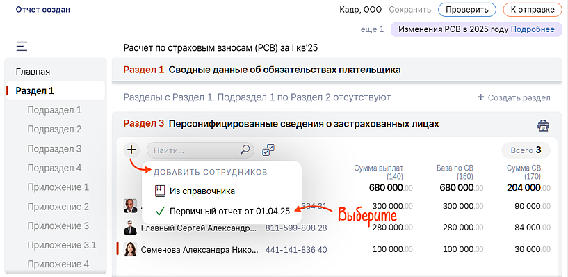 Новые возможности уже доступны в отчетах «Расчет по страховым взносам» и «Персонифицированные сведения о застрахованных лицах».