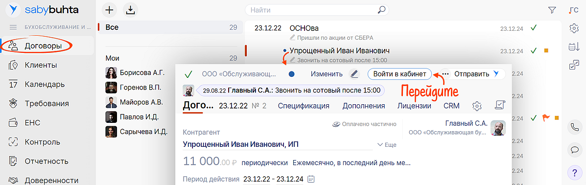 Перейдите в личный кабинет клиента через карточку договора.