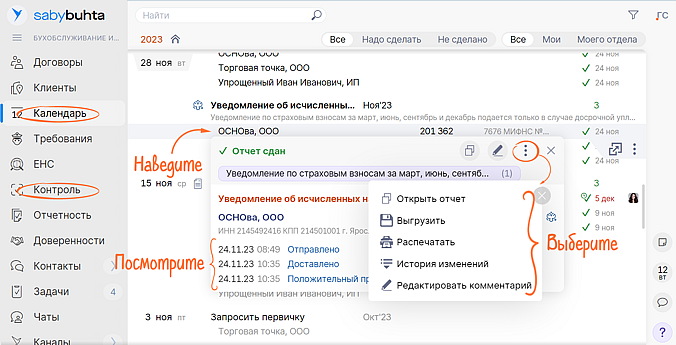 Теперь в разделах «Календарь» и «Контроль» вы можете: