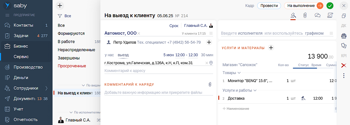 Теперь работы и материалы объединены в одной таблице, как в счетах и реализациях. Сразу добавляйте услуги в счет, и они попадут в наряд.