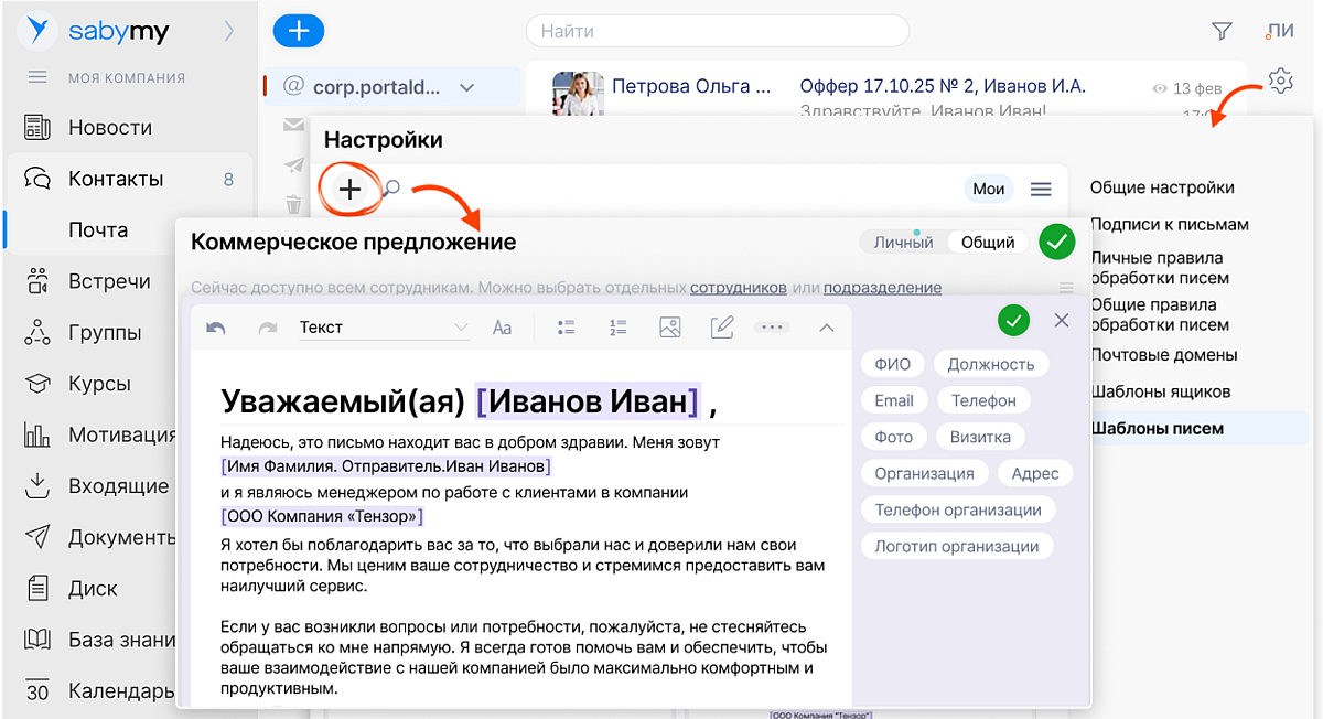 В почте Saby появились шаблоны. Они помогают отправлять типовые документы — акты, договоры или коммерческие предложения — без ошибок и в едином стиле компании.