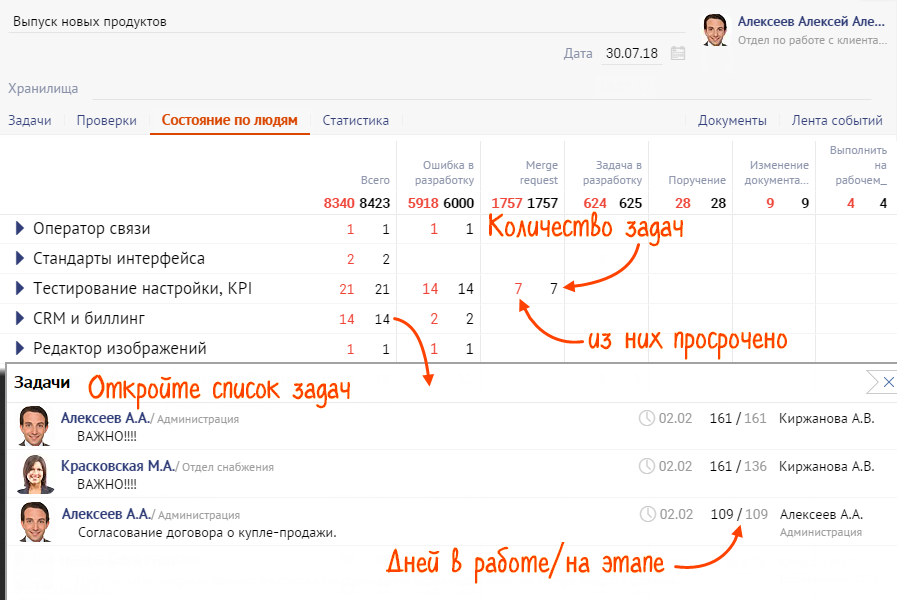 Прямо в вехе посмотрите аналитику: сколько дней потрачено на решение задач и какие из них зависли. Здесь же есть исполнители и ответственные — свяжитесь с ними, чтобы выяснить, в чем загвоздка.