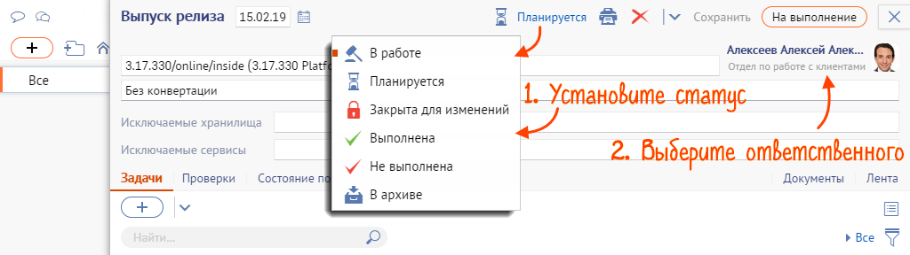 СБИС отразит состояние вехи. Планируется или уже запущена в работу — значит, в нее еще можно добавлять задачи. Чтобы объем работ не разросся до неподъемных размеров, в определенный момент запретите это делать. У вехи появится состояние «закрыта».