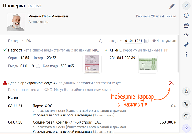 Так как некоторые проверки выполняются только по имени и дате рождения, СБИС может показать сведения по «тезке» проверяемого. Теперь их можно скрыть, чтобы они не отвлекали.