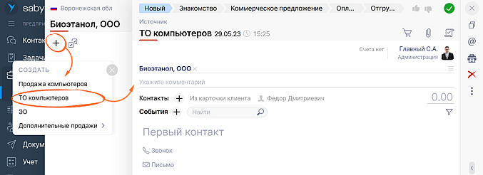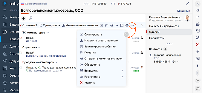 Подробнее о работе с контактами клиента и сделками читайте в инструкциях.