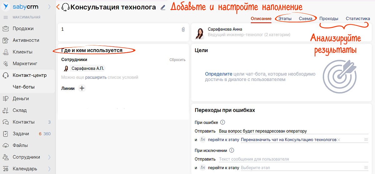 Сделали управление чат-ботами нагляднее и удобнее. Настройка, запуск, статистика — теперь все в одном разделе. Собирайте ботов как конструктор, распределяйте по папкам, анализируйте проходы пользователей и выстраивайте стратегию на точных данных.