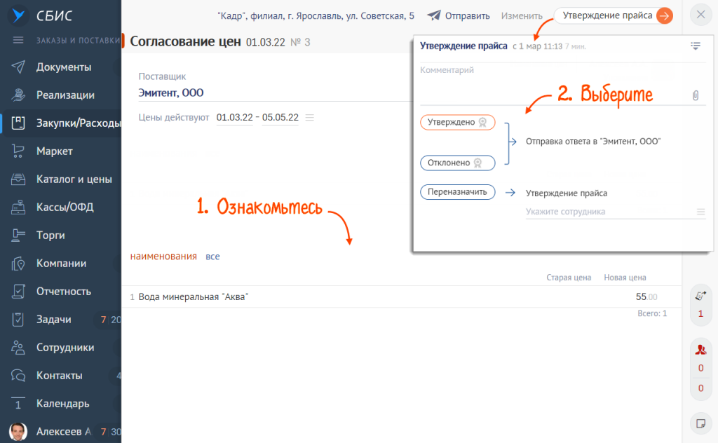 Ранее прайсы приходилось пересылать по почте, что долго и затратно, и сверять данные вручную — если позиций тысячи, то процесс затягивался. PRICAT сразу попадает в личный кабинет торговой сети, при этом СБИС покажет, на какие позиции изменилась стоимость, а после утверждения будет применять новые цены во всех документах.