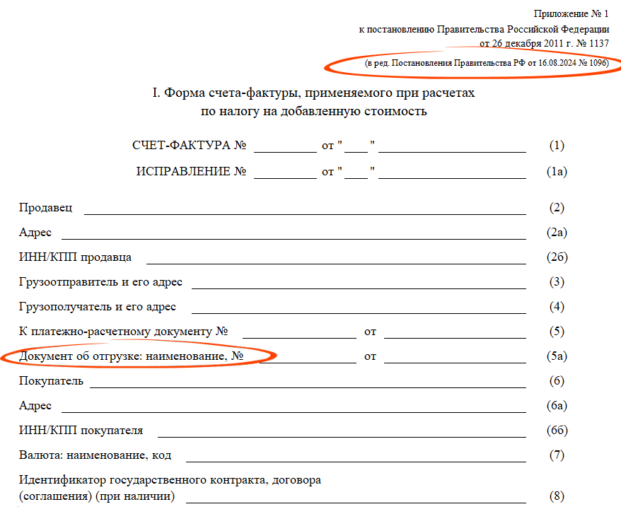 С 1 октября 2024 года действует новая форма счета-фактуры, включая корректировочный счет-фактуру.