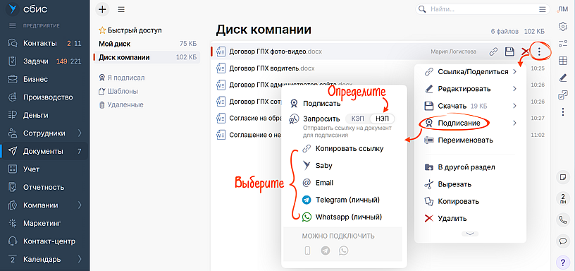 4. Подписывайте документы с физлицом, даже если его нет в Saby