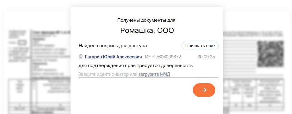 Теперь контрагент без ЭДО может подписывать документы по ссылке с КЭП физлица и МЧД. Отправляйте из документа ссылку как обычно. После того как адресат перейдет по ней, Saby предложит ввести реквизиты или загрузить файл машиночитаемой доверенности. Система проверит ее действительность, запомнит ее для будущих подписаний и предоставит доступ для работы с документом.