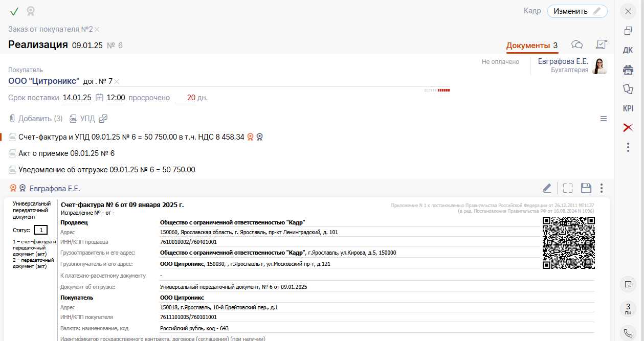 Обновили API ЭДО для реализаций и поступлений. Теперь при переходе по ссылке Документ.СсылкаДляНашаОрганизация документ откроется со всеми вложениями во вкладке «Документы».