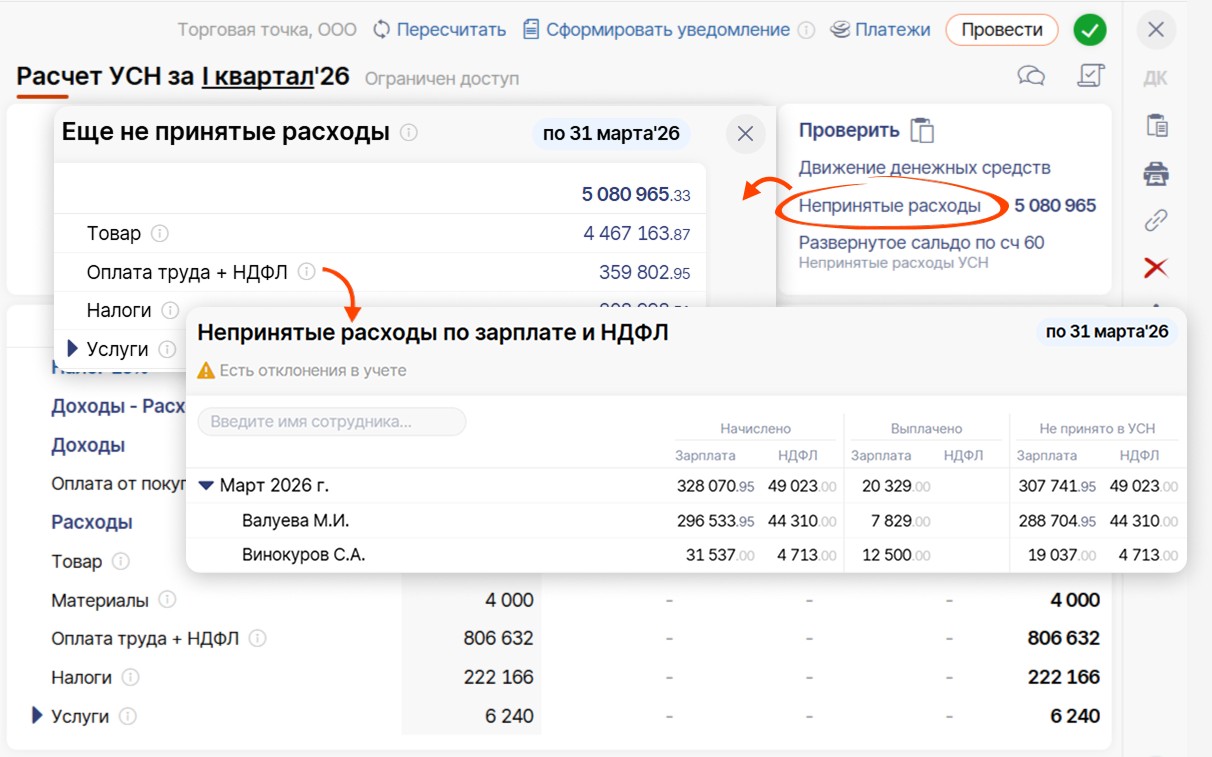 Для расчетов за 2026 год есть дополнительный отчет — по непринятым расходам с детализацией по каждому сотруднику.