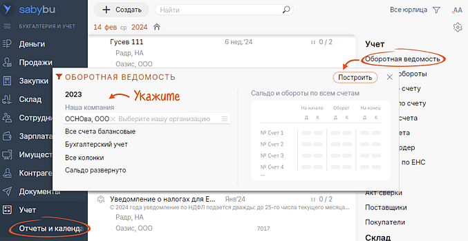 сформируйте ее из раздела «Отчеты и календарь»