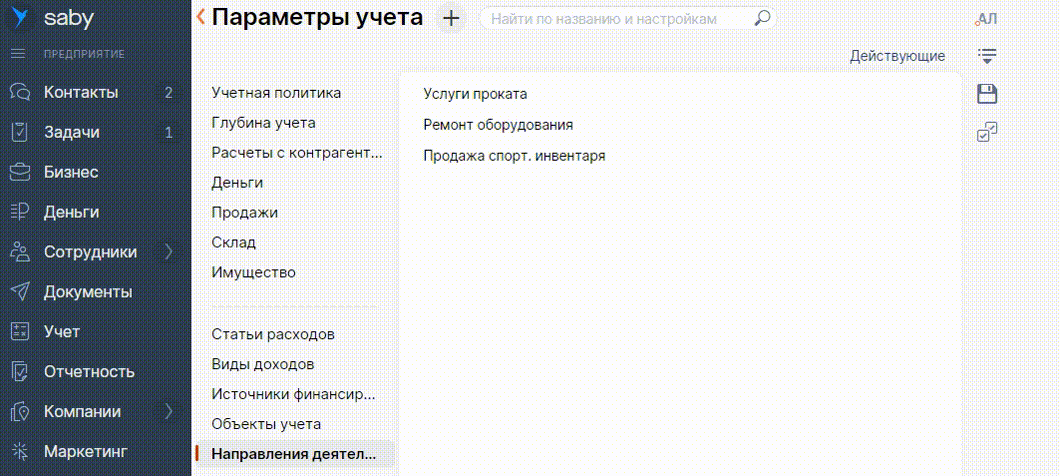 Подробнее про учет по направлениям деятельности — в базе знаний.