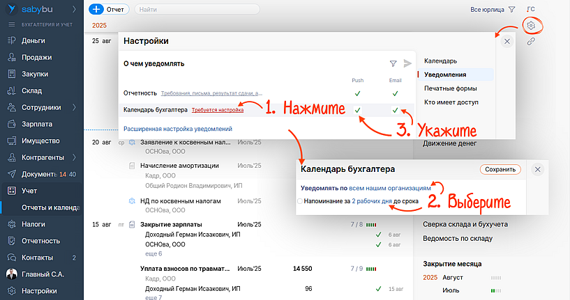 Теперь настроить уведомления в календаре стало еще проще — выбирайте, когда и куда прислать напоминание, прямо в разделе «Отчеты и календарь». Всего пара кликов — и только четкие сроки и вовремя закрытые задачи.
