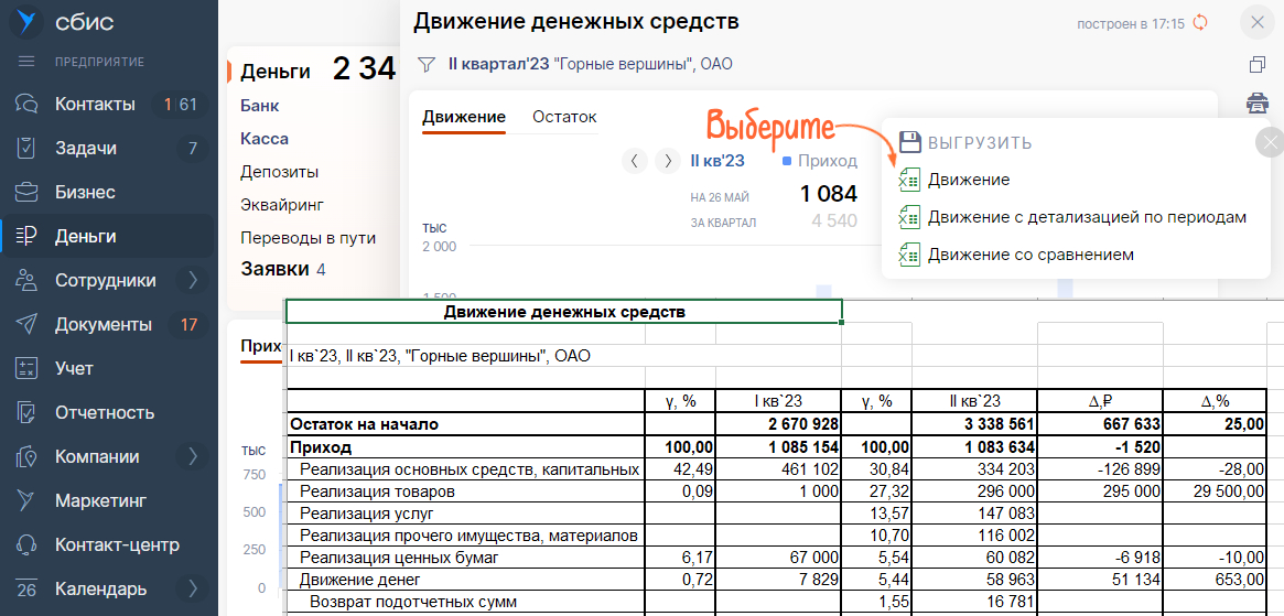 Как построить отчет о движении денежных средств — читайте в базе знаний.