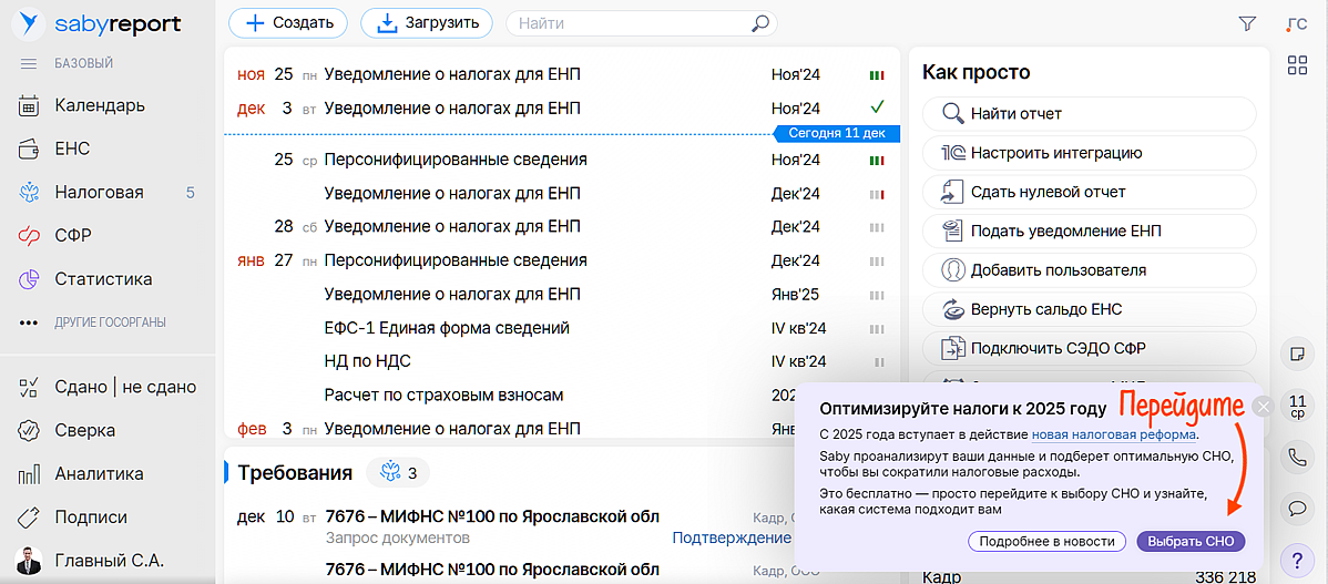 Просто зайдите на главную страницу в приложении Saby Report или Saby Bu*.