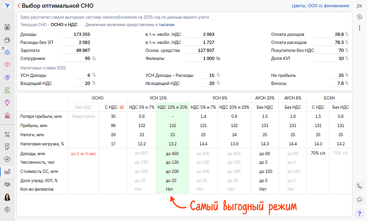 Мы обновили калькулятор выбора системы налогообложения (СНО) с учетом всех изменений законодательства. Saby проанализирует данные ваших организаций и определит самый выгодный для вас налоговый режим.