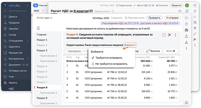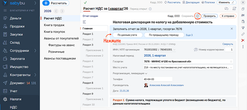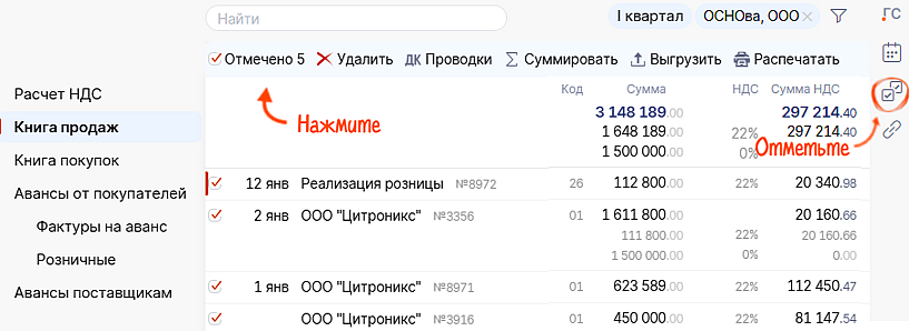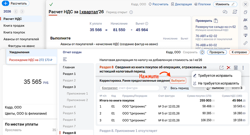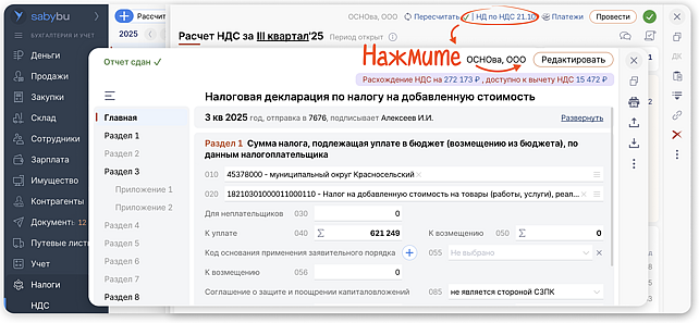 В разделе «Налоги → НДС» выберите нужную книгу.