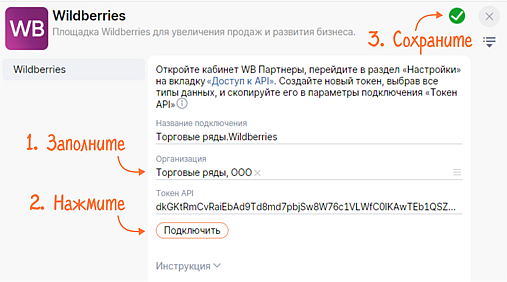 Настройте интеграцию: откройте вкладку «Маркетплейсы», выберите Wildberries и следуйте подсказкам.