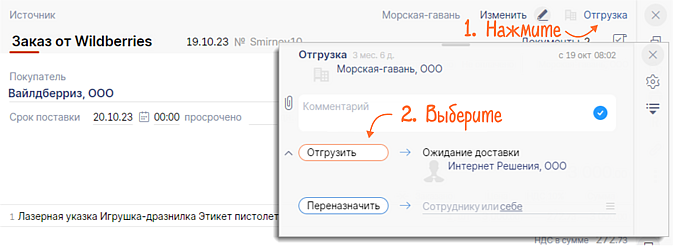 Переходить в личный кабинет маркетплейса больше не нужно — обрабатывайте заказы прямо в системе.