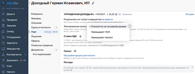 Настройте списки продаж, чтобы верно отнести доходы к определенной СНО. В списке документов отгрузки отберите нужные реализации через панель массовых операций, сверху нажмите «Проводки/Пересчитать налоги». После — обновите проводки в платежах. | |