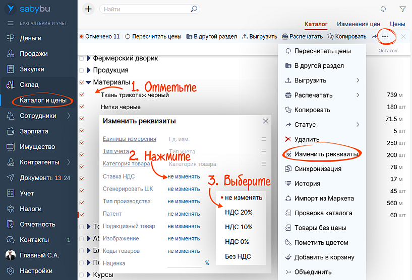 Независимо от того, какую ставку по НДС выбрали (общую или пониженную), в каталоге укажите: