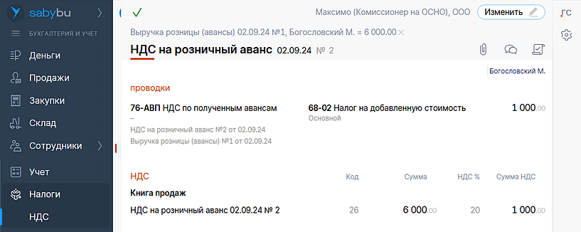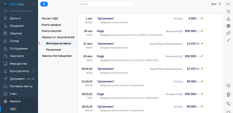 Теперь Saby учитывает НДС по авансам от физлиц в новом документе: «НДС на розничный аванс». В том числе при реализации подарочных сертификатов. Изменение никак не повлияет на заполнение декларации.