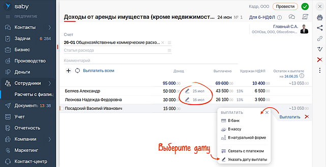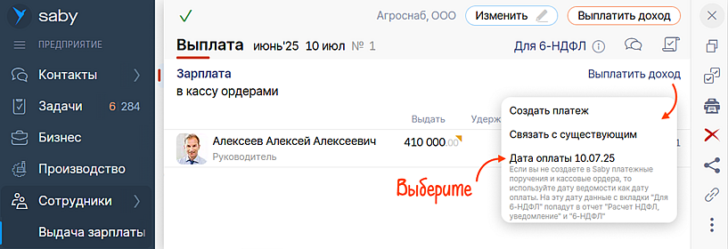 Упростили подготовку отчетности по НДФЛ для тех, кто ведет в Saby только зарплату или не успевает загрузить платежные документы. Не нужно тратить время на оформление лишних платежек — просто поставьте дату оплаты в ведомости вручную.