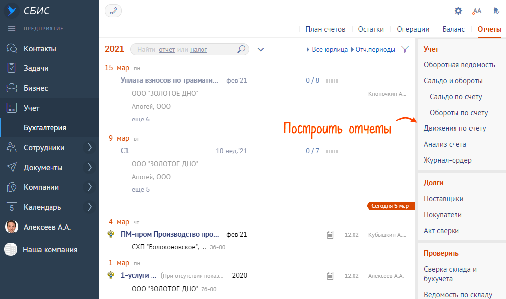 Подробнее о том, какие отчеты может построить бухгалтер в СБИС, читайте в инструкции.