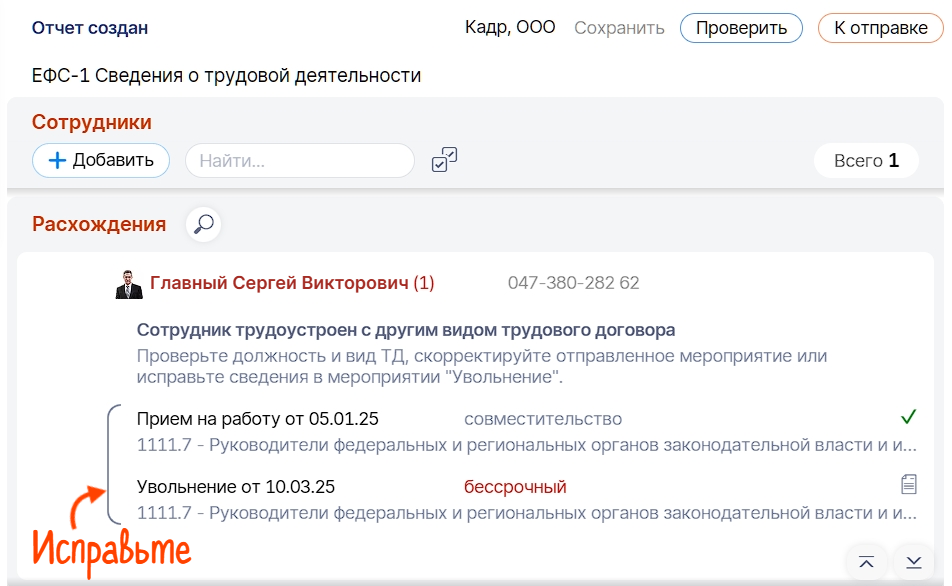 Воспользуйтесь сверкой сотрудников в Saby, чтобы найти и быстро исправить все расхождения.