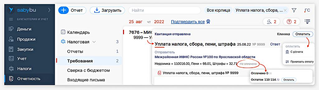Если налоговая прислала требование об уплате недоимки, штрафа или пеней — оплатите задолженность за пару кликов.