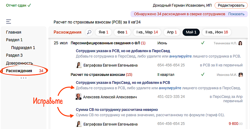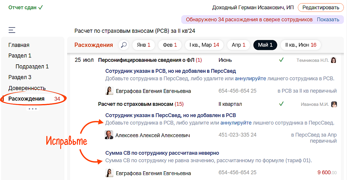Просто заполните или загрузите РСВ — система покажет все расхождения прямо в отчете.