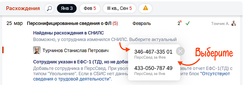 Учтет сотрудников, ранее ошибочно удаленных при корректировках.