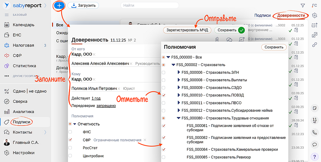 Для сдачи отчетов в СФР подойдут МЧД с полномочиями: