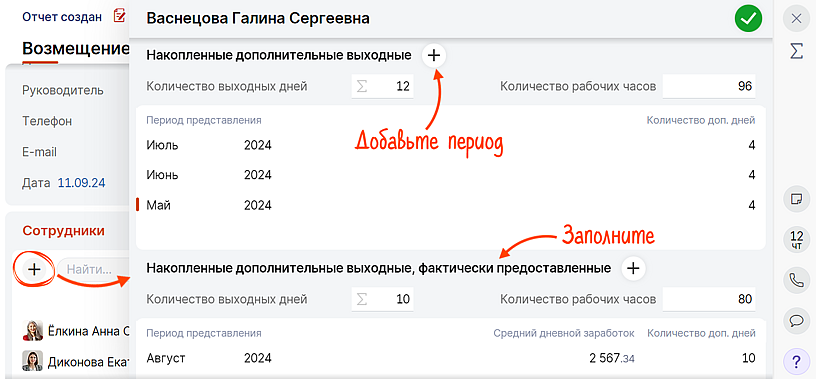 Добавьте сотрудников, за которых хотите получить возмещение.