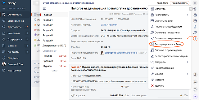 Мы уже реализовали возможность выгрузки в формате .xlsx для большей части популярных отчетов. В их числе: бухгалтерская отчетность, НД по НДС, косвенным налогам, акцизам, 6-НДФЛ, а также большинство форм для направления в Росстат.
