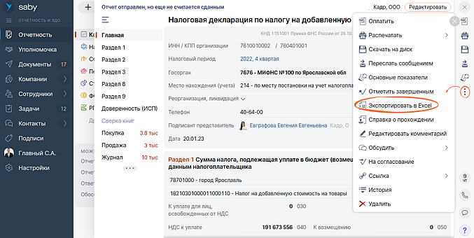 Так, при работе с книгами покупок и продаж в НД по НДС после выгрузки вы можете легко проверить, нет ли случайных ошибок в суммах или номерах счетов-фактур. Затем исправить в таблице и снова загрузить ее в СБИС.