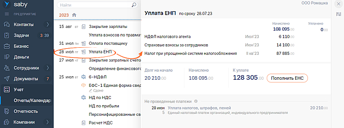 Если все правильно — нажмите «Пополнить ЕНС». После того как все налоги и платежки на их уплату будут проведены, событие в календаре будет отмечено зеленой галочкой.