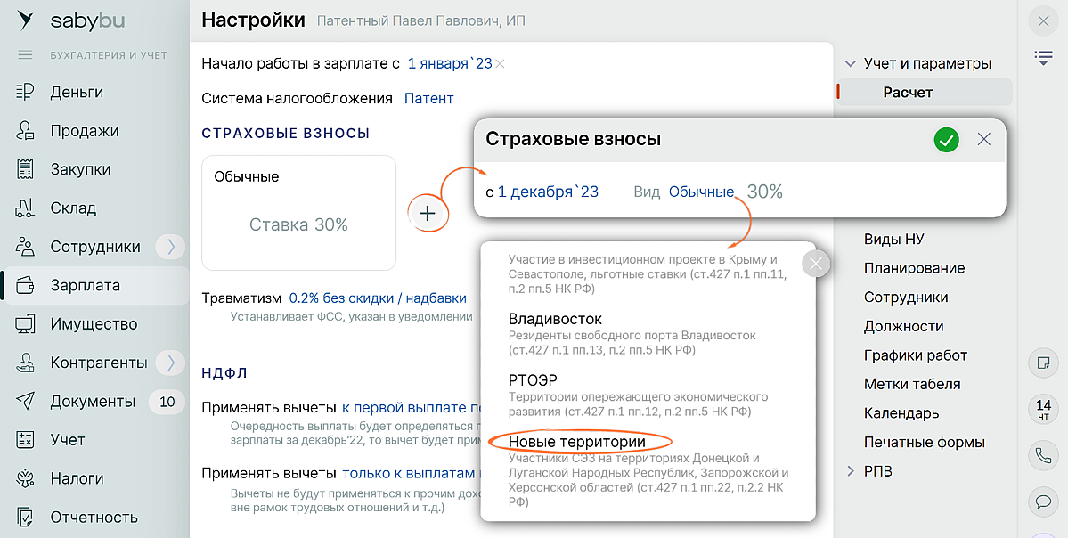 Компании-участники свободной экономической зоны в ДНР, ЛНР, Запорожской и Херсонской областях теперь могут настроить пониженные страховые взносы в СБИС.