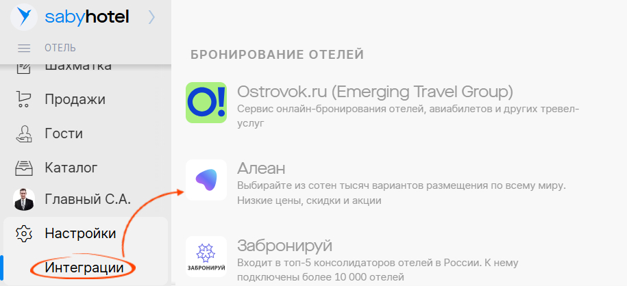 Карточки сервисов онлайн-бронирования находятся в разделе «Интеграции».