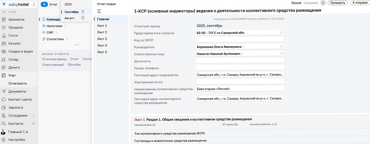 Все отели и апартаменты обязаны сдавать отчет 1-КСР в Росстат. Обычно на подготовку уходит много времени: сбор данных из разных источников, сверка цифр и постоянная перепроверка.